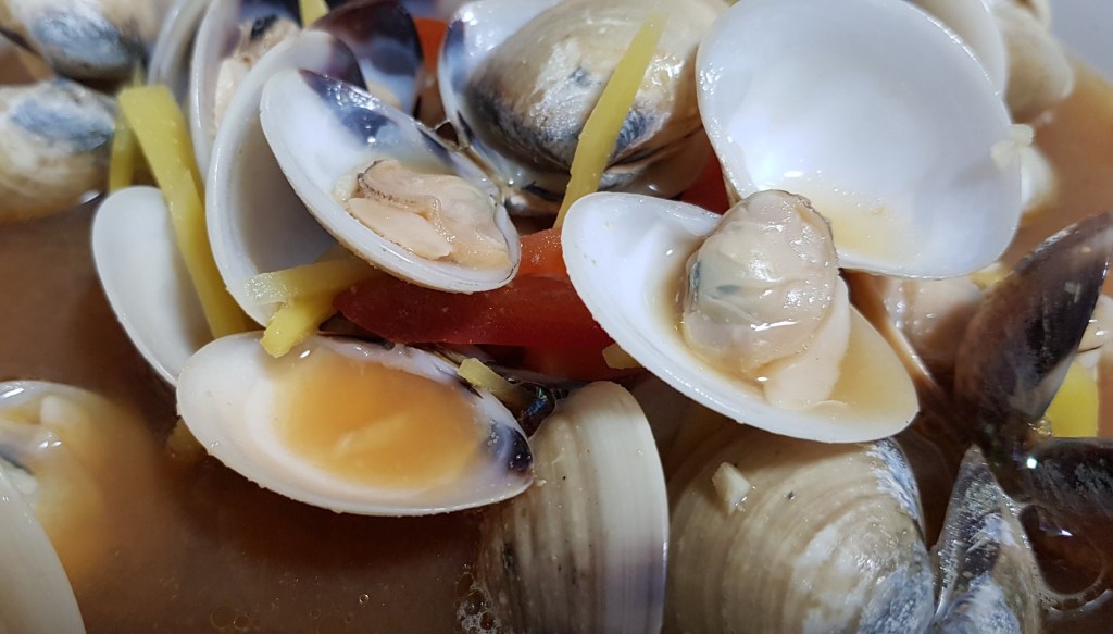 Clams or a particular type known is ‘La-La Clams’ are a local favourite and can be pricey when you eat at a local eatery. Clams in the raw are cheap, under SGD3 for about 500gms. The usual way of cooking is to stir fry with garlic & ginger.