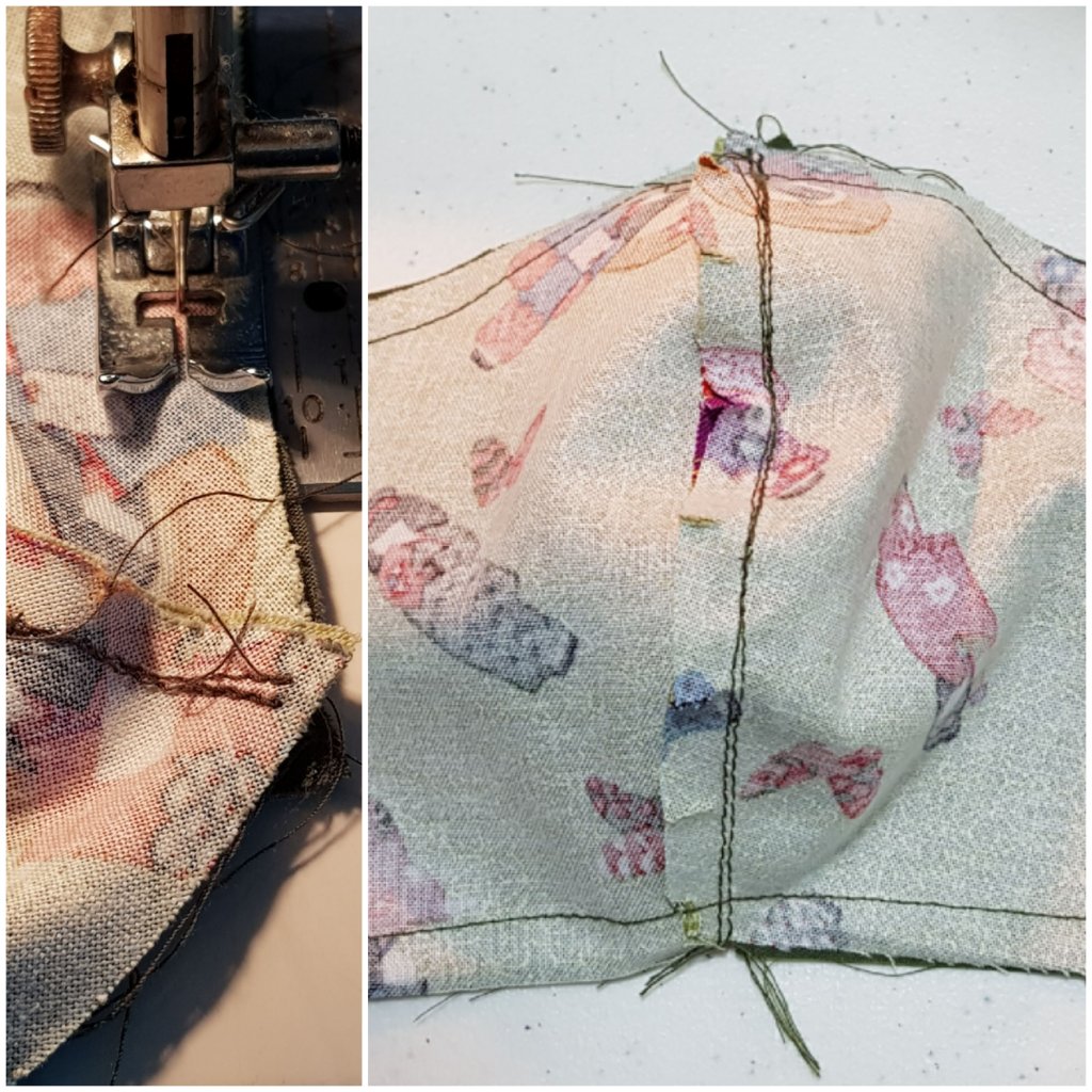 • Turn in 1/4″ from the open end of the masks, fold another 1/2″ to create a pocket.