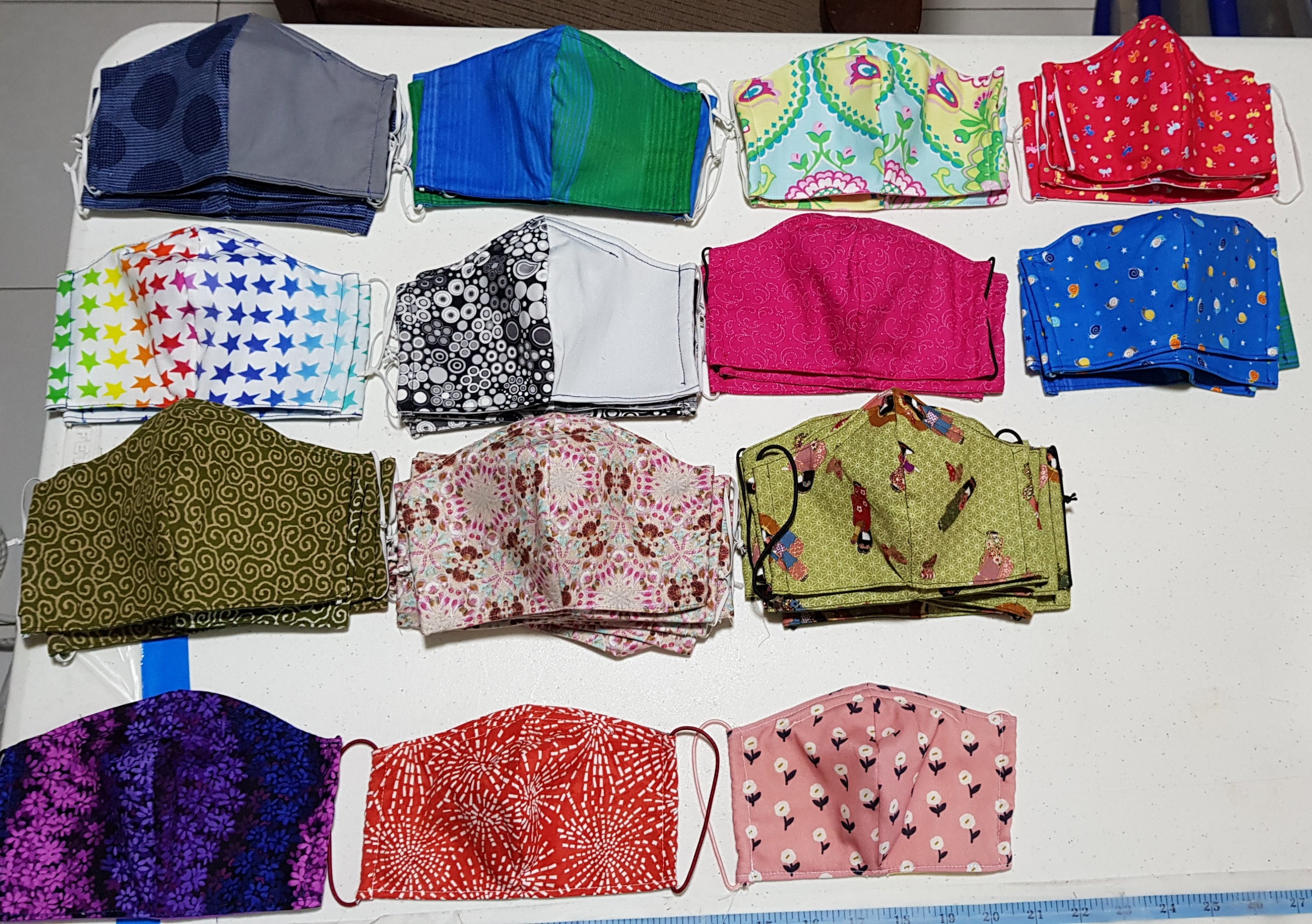 Some of the masks made for my family members as well as staff, educators, cooks & cleaners at a daycare centre